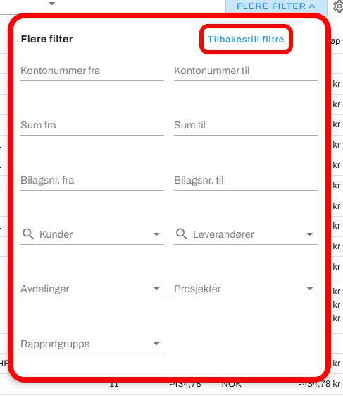 Slik bruker du filtrene i hovedbok